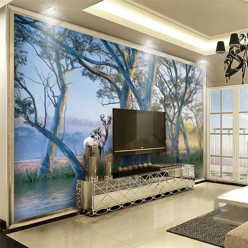 beibehang Custom 3d wallpapers European aesthetic forest trees elk oil painting mural sofa TV living room background wall|3d wallpaper|custom 3d wallpapercustom 3d - AliExpress